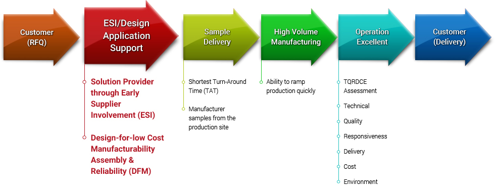 We STRIVE To Understand Customers' Needs Through Early Stage Involvment(ESI) By Working Hand In Hand With You Right From The R&D Stage. We Create Lasting Partnerships And Promote Growths With Our Customers Through Innovative Solutions And Close Application Supports.